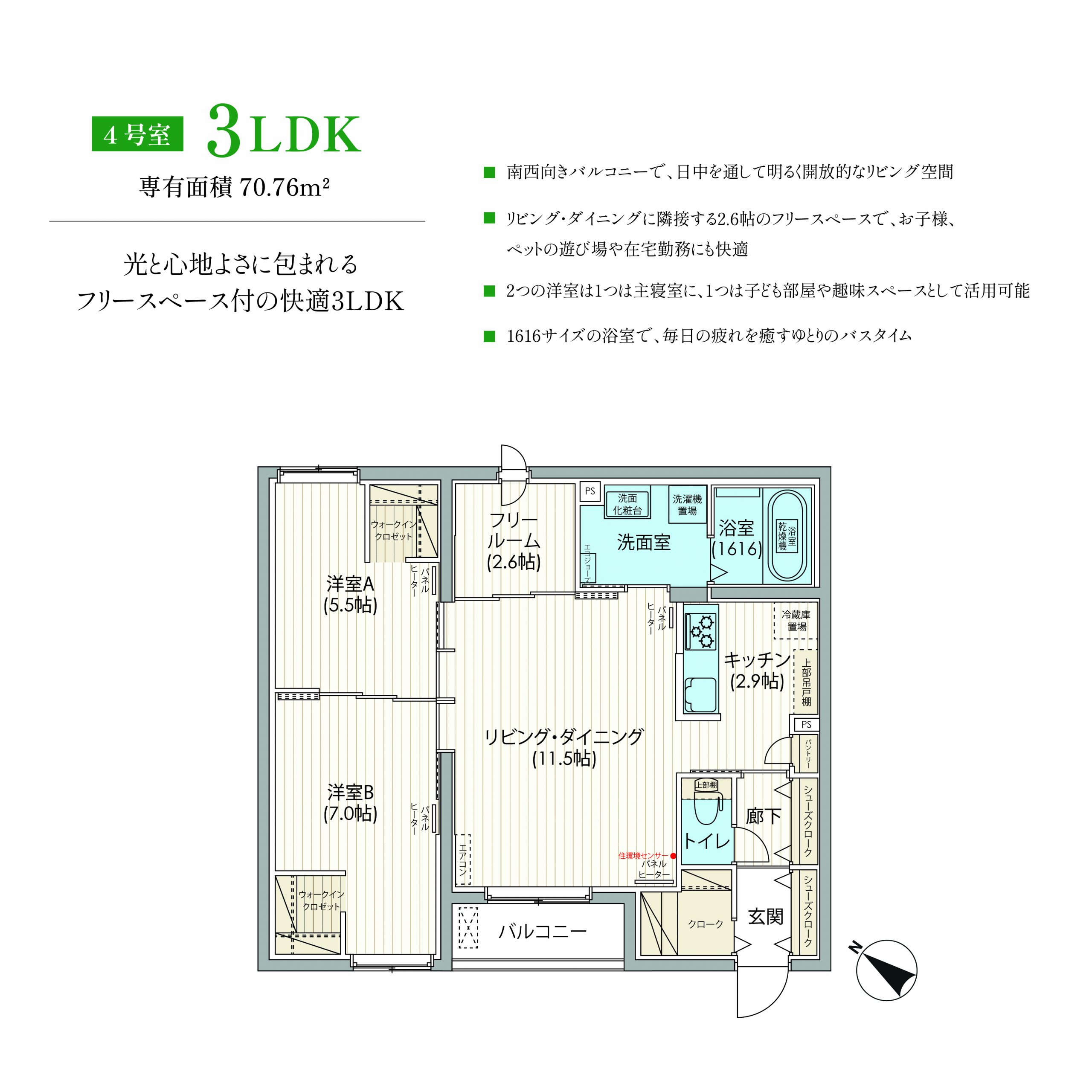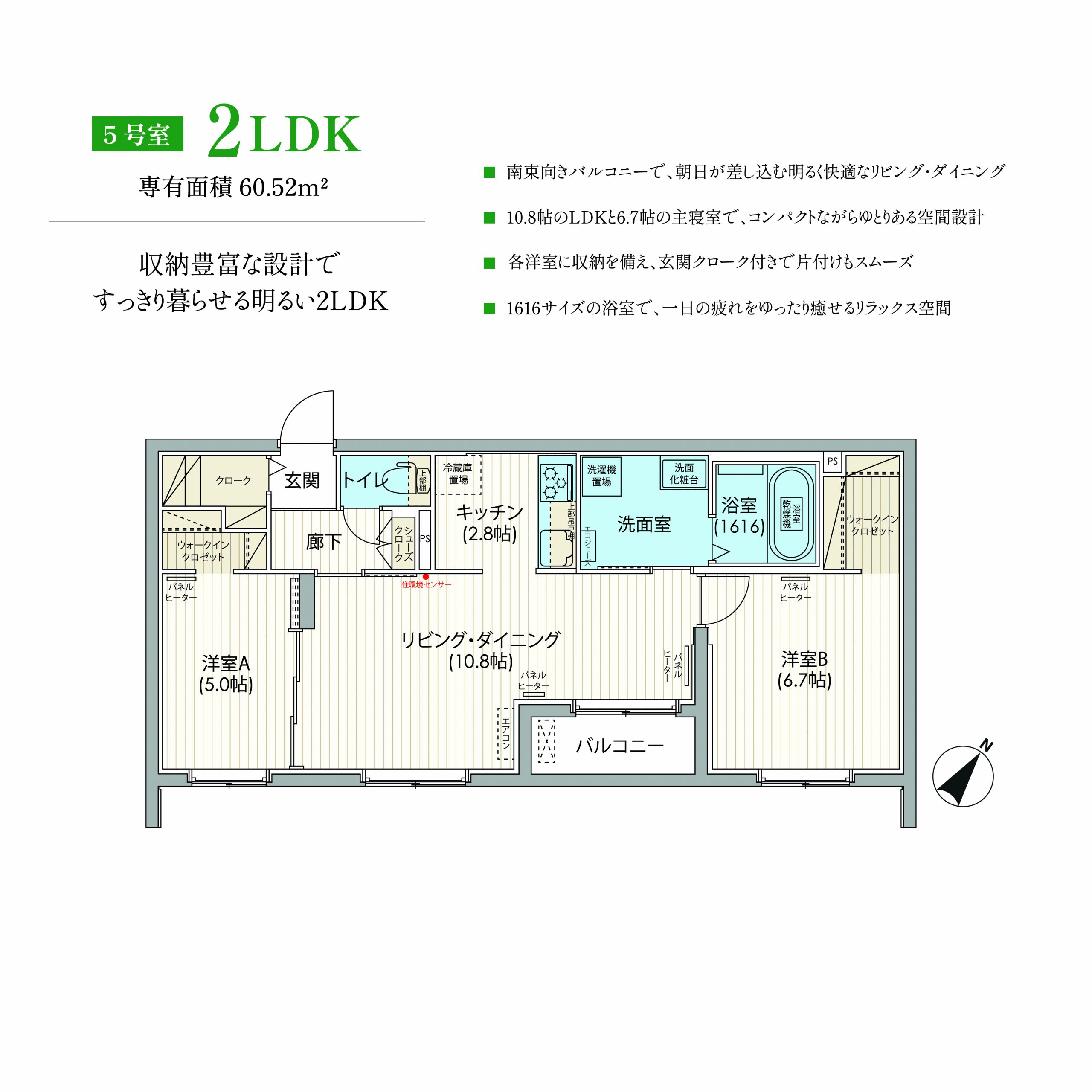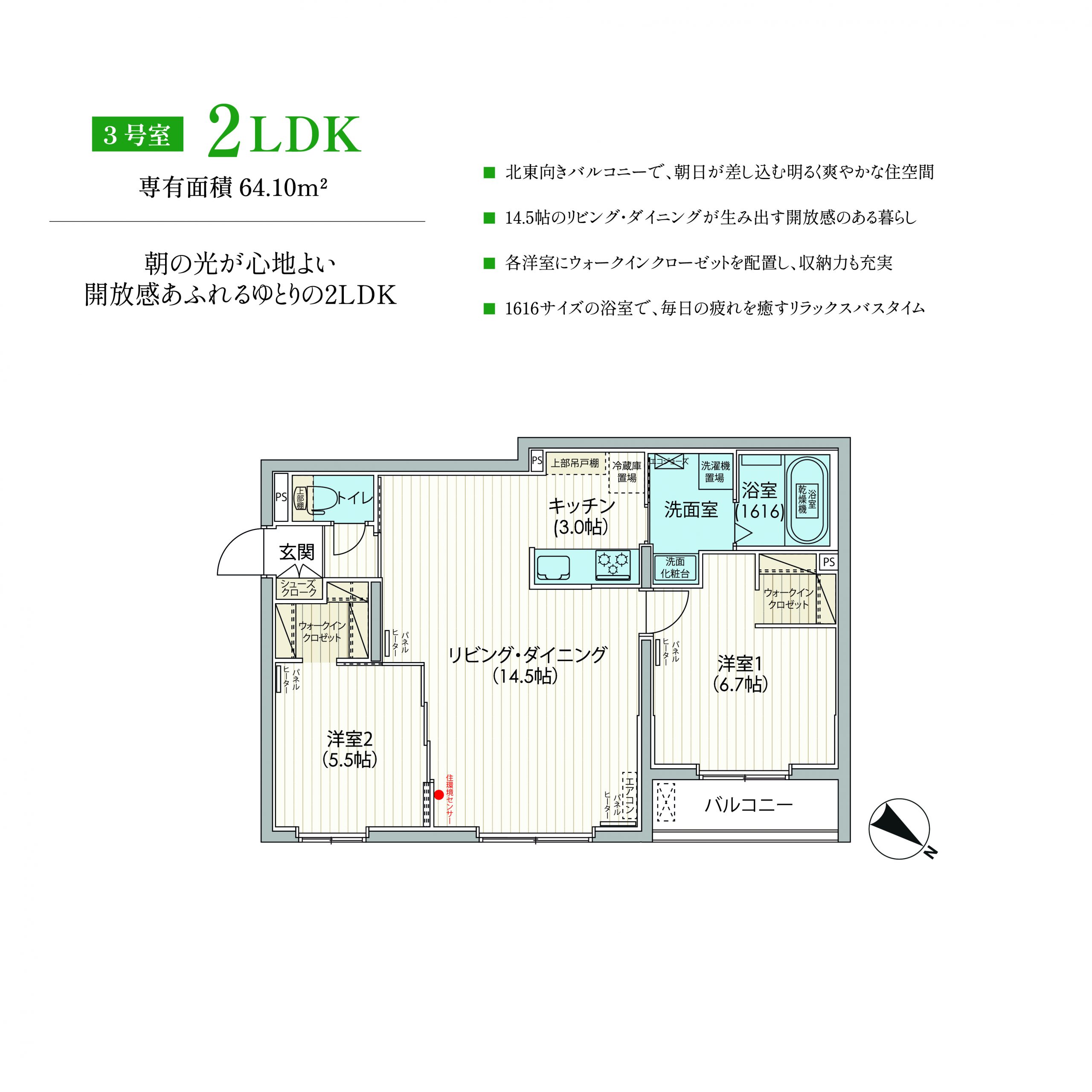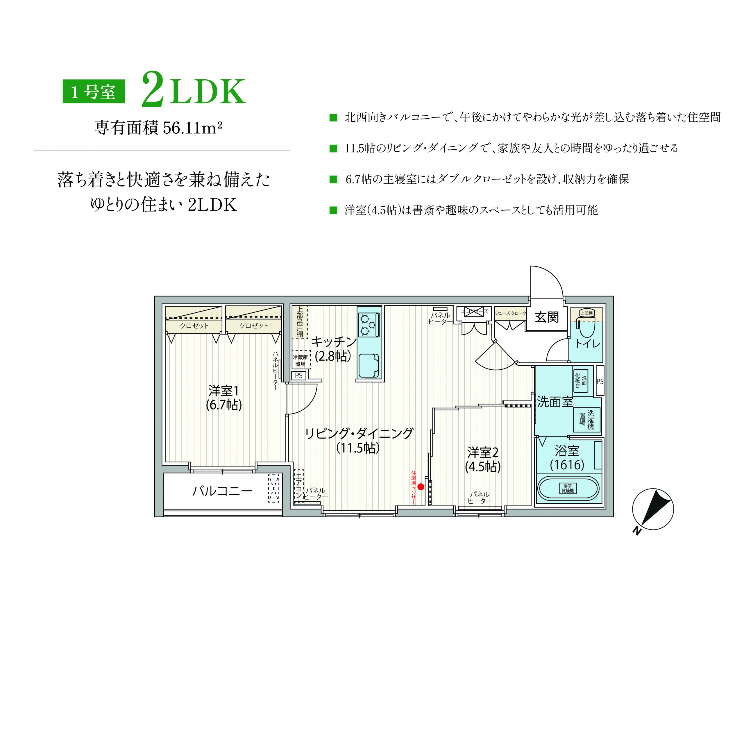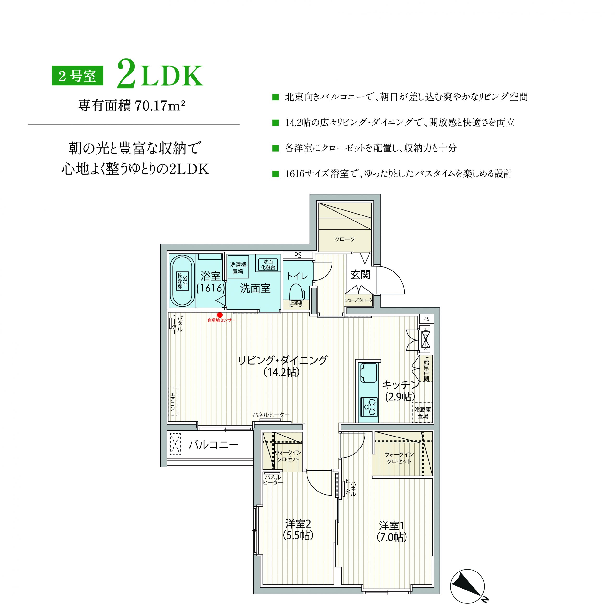 2LDK(50.91㎡、56.11㎡、60.52㎡、63.06㎡、64.10㎡、70.17㎡)、3LDK(70.75㎡)