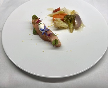 ◆桜鱒のコンフィ 春野菜のエチュベ