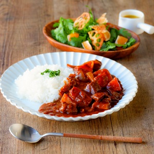 大人の欧風ビーフカレー◆春菊とれんこんのサラダ
