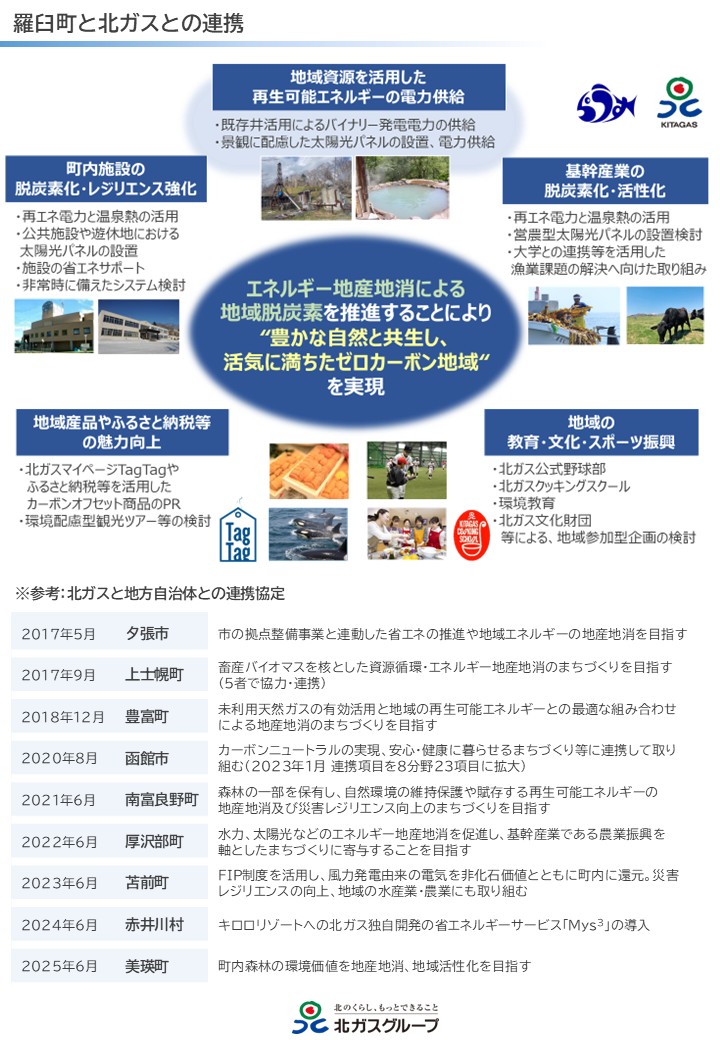 北海道ガス株式会社(社長:川村 智郷、本社:札幌市、以下:北ガス)は、本日、羅臼町(町長:湊屋 稔様)と連携協定を締結いたしました。世界自然遺産知床に代表される羅臼町の豊かな自然と、脱炭素化の取り組みを共生させ、2030年カーボンニュートラルを共に目指してまいります。