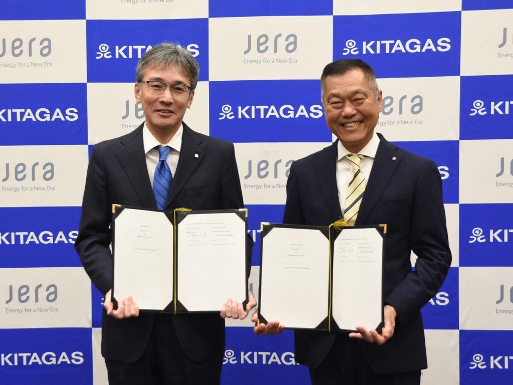 (右より、JERA 常務執行役員 津輕 亮介様、北ガス 代表取締役社長 川村 智郷)