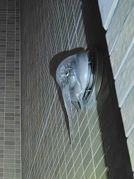 ガス給湯器やFF暖房機の排気筒(煙突)先端が氷や雪によって塞がれていると、不完全燃焼や異常着火などの原因につながる恐れがあります。