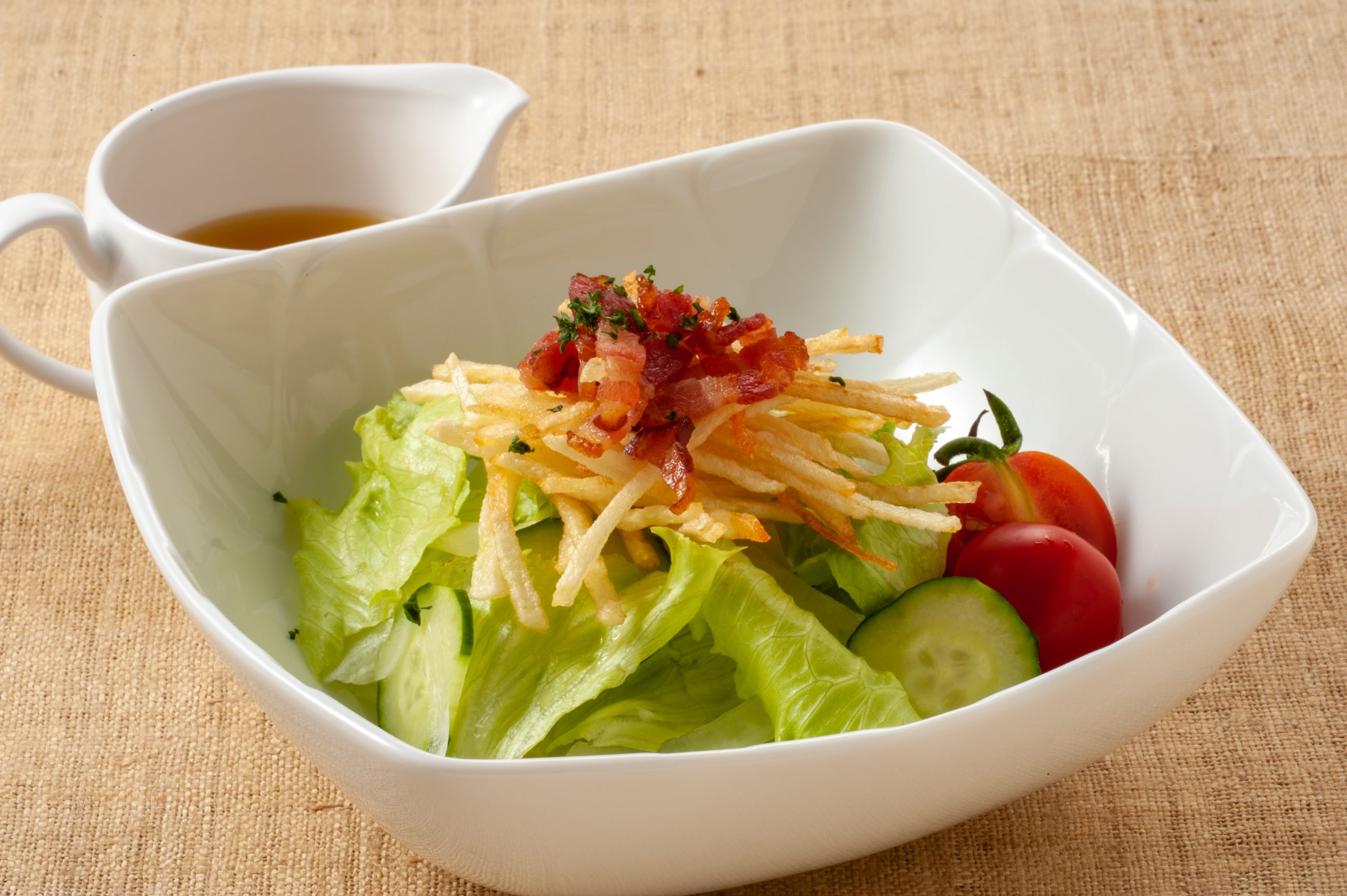 香ばしいフライドポテトとベーコンが生野菜とよく合います。